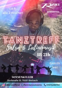 Tanztreff mit Salsa & Latinomusik – auch ab 24. September wieder regelmäßig i.d.R. alle zwei Wochen an einem Sonntag von 18 bis 21 Uhr mit ZRDance in Bleibach (einem Ortsteil von Gutach). Die genauen Termine werden hier im Kalender angegeben, da manche sich verschieben oder aus untersch. Gründen ausfallen.