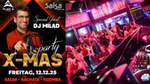 X-MAS Salsa, Bachata & Kizomba Night am Freitag, 12. Dezember 2025 in Lahr in der Discothek Plan A in Kooperation mit dem Salsa Club Lahr. Diesmal mit DJ Milad – die ganze Nacht die schönsten Latino Beats. Tauche ein in eine heiße Tanznacht in einer wunderschönen Location.