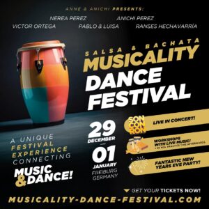 Und zum Jahresende hin steht dann für alle das große SALSA & BACHATA MUSICALITY DANCE FESTIVAL vom 30.12.2024-01.01.2025 an. Nähere Infos hierzu zeitnah und an entsprechender Stelle in unserem Kalender auf regiosalsa.de!