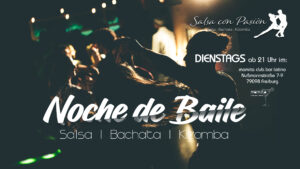 Die Freiburger Tanzschule „Salsa con Pasion“ präsentiert: „Wir beginnen die Woche mit mitreißenden Rhythmen von Salsa, Bachata und Kizomba, um gemeinsam zu tanzen oder an der Bar einen Drink mit Freunden genießen! Nos vemos en la pista de baile!“ jeden Dienstag im Mamita.