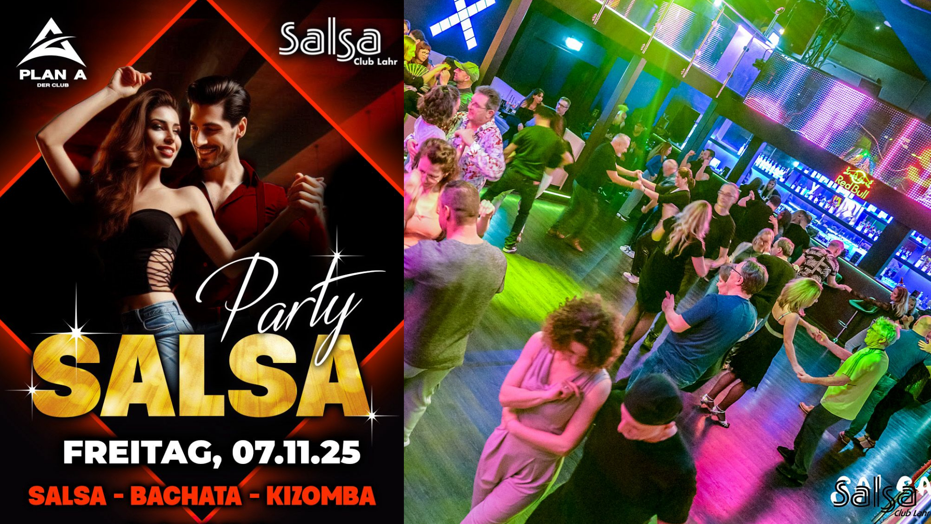 Salsa, Bachata & Kizomba Night am Freitag, 07. November 2025 in Lahr in der Discothek Plan A in Kooperation mit dem Salsa Club Lahr. Diesmal mit DJ Andrej – die ganze Nacht die schönsten Latino Beats. Tauche ein in eine heiße Tanznacht in einer wunderschönen Location.