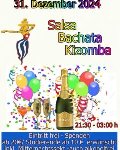 Open SylvesterFeier für alle, die kommen möchten 🥳✨💃mit Salsa, Bachata und Kizomba ✨🥳💃🎉gute Laune und viel Freunde das neue Jahr anfangen 🥳✨💃🎉wir freuen uns auf dich!